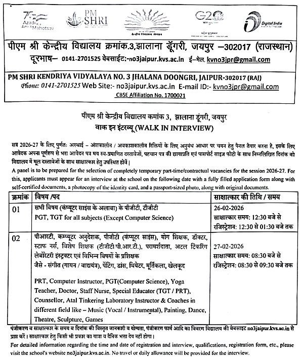 | KVS 3 जयपुर | 26-27 फरवरी 2026 | Download Here |