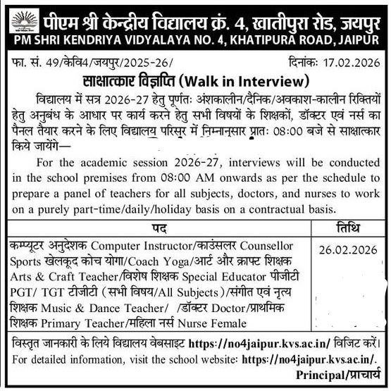 | KVS 4 जयपुर | 26 फरवरी 2026 | Download Here |