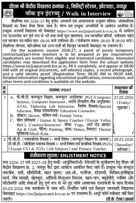| KVS 2 जयपुर | 27-28 फरवरी 2026 | Download Here |