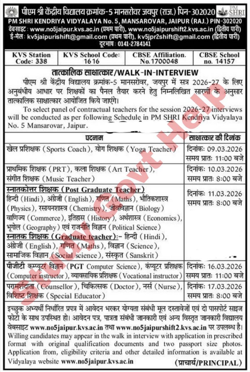 | KVS 5 जयपुर | 09-17 मार्च 2026 | Download Here |