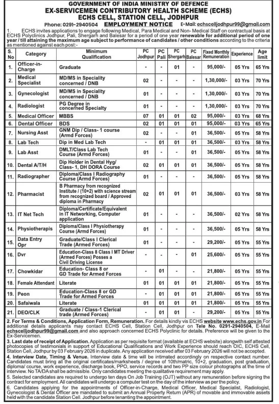 Recruitment NameRajasthan ECHS Recruitment 2026